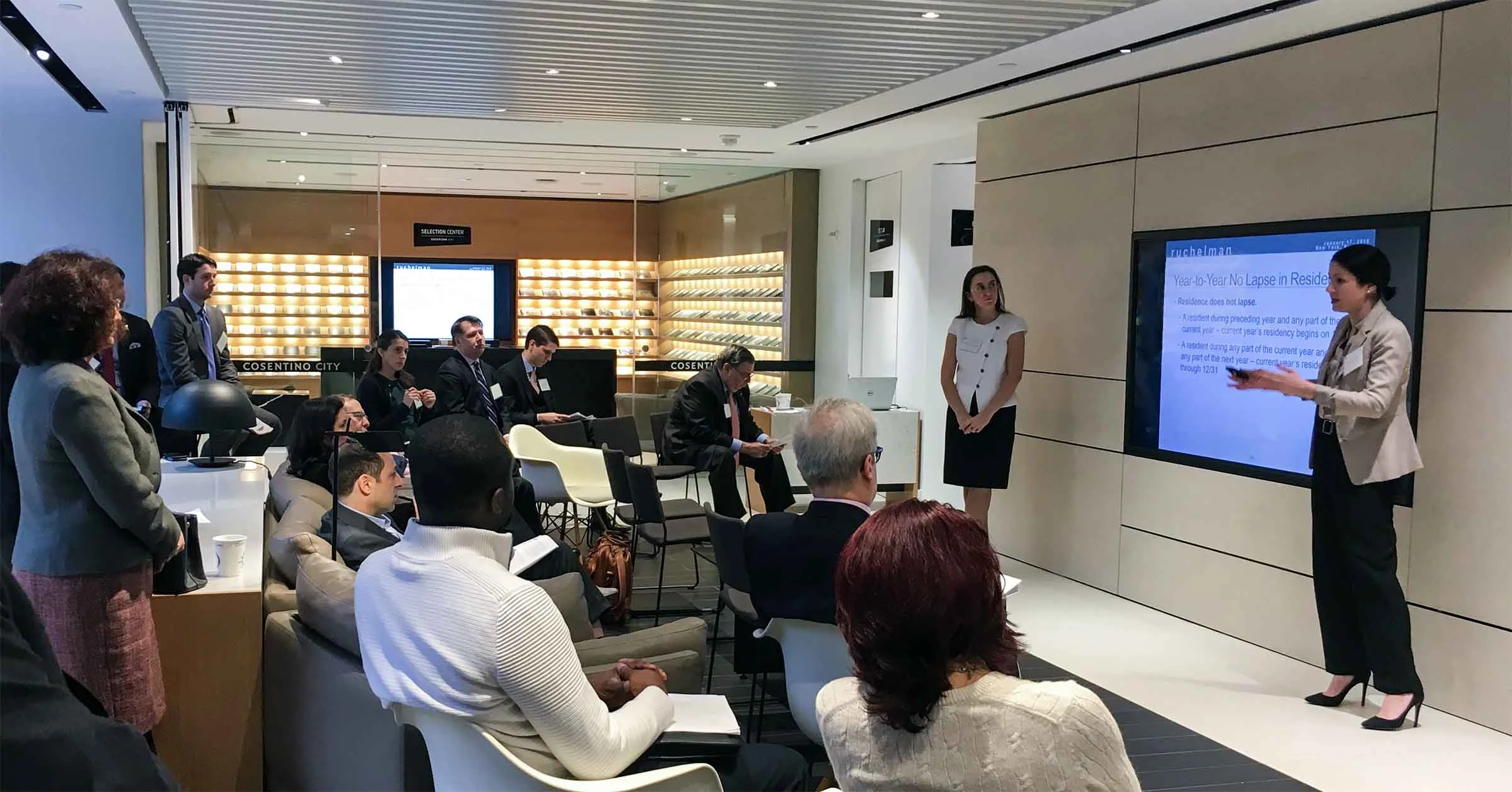 / Ruchelman P.L.L.C.Ruchelman P.L.L.C. was pleased to present its first seminar of the year at the Cosentino City showroom. This special program featured insights from Alev Fanny Karaman and Rusudan Shervashidze on the tax rules that affect individuals moving across borders.